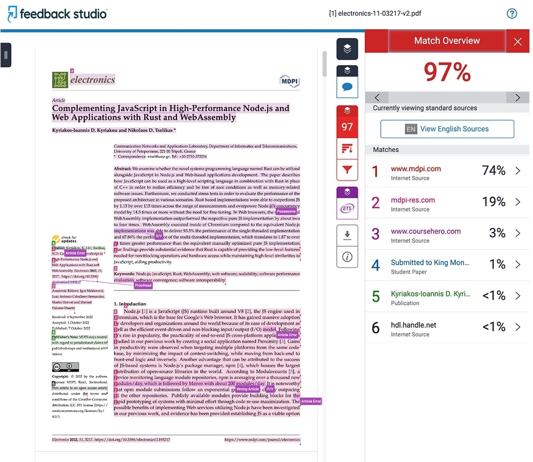 Get your document’s plagiarism check report quickly and accurately from Turnitin Feedback Studio.
